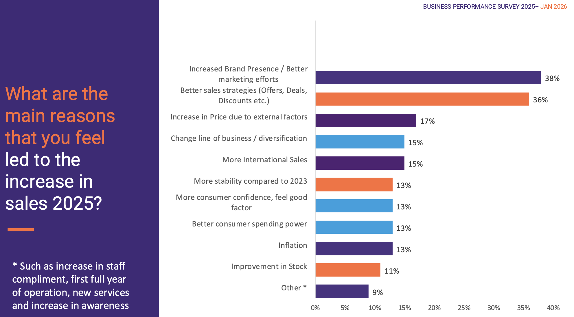 Businesses that saw increased sales attributed growth mainly to:
