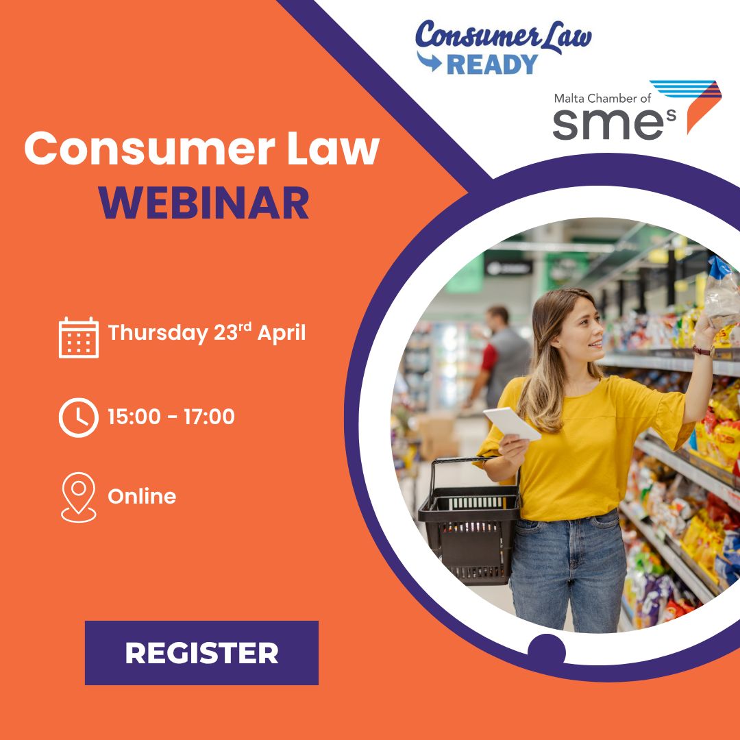 👉 Click below to register: https://sme-chamber-mt.odoo.com/event/webinar-consumer-law-for-smes-free-training-97/register